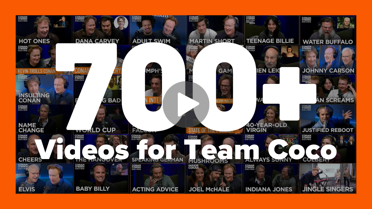 Over 700 videos edited for Conan O’Brien Needs a Friend and many other Team Coco podcasts. Including interviews with Billie Eilish, President Joe Biden, Harrison Ford, Bill Hader, Bryan Cranston, Goldie Hawn, John Mulaney, Carol Burnett, Jack Black, Walton Goggins, Tiffany Haddish, Steve Martin, Kevin Nealon and many more!